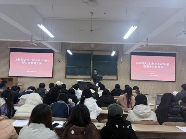 为保障园林专业《园林规划设计综合实训》课程的顺利开展,提升学生外出实训的安全意识,11月26日下午,澳门十大信誉好的网站在江北校区1201教室召开了园林规划设计综合实训动员暨安全教育大会,参加会议的有园林系胡凤莲、张心愿、张铭珺、沈古理等老师和园林2023级1班、2班、2025级专升本班全体同学,本次会议由张心愿老师主持,围绕实训安排、安全事项等内容展开部署。