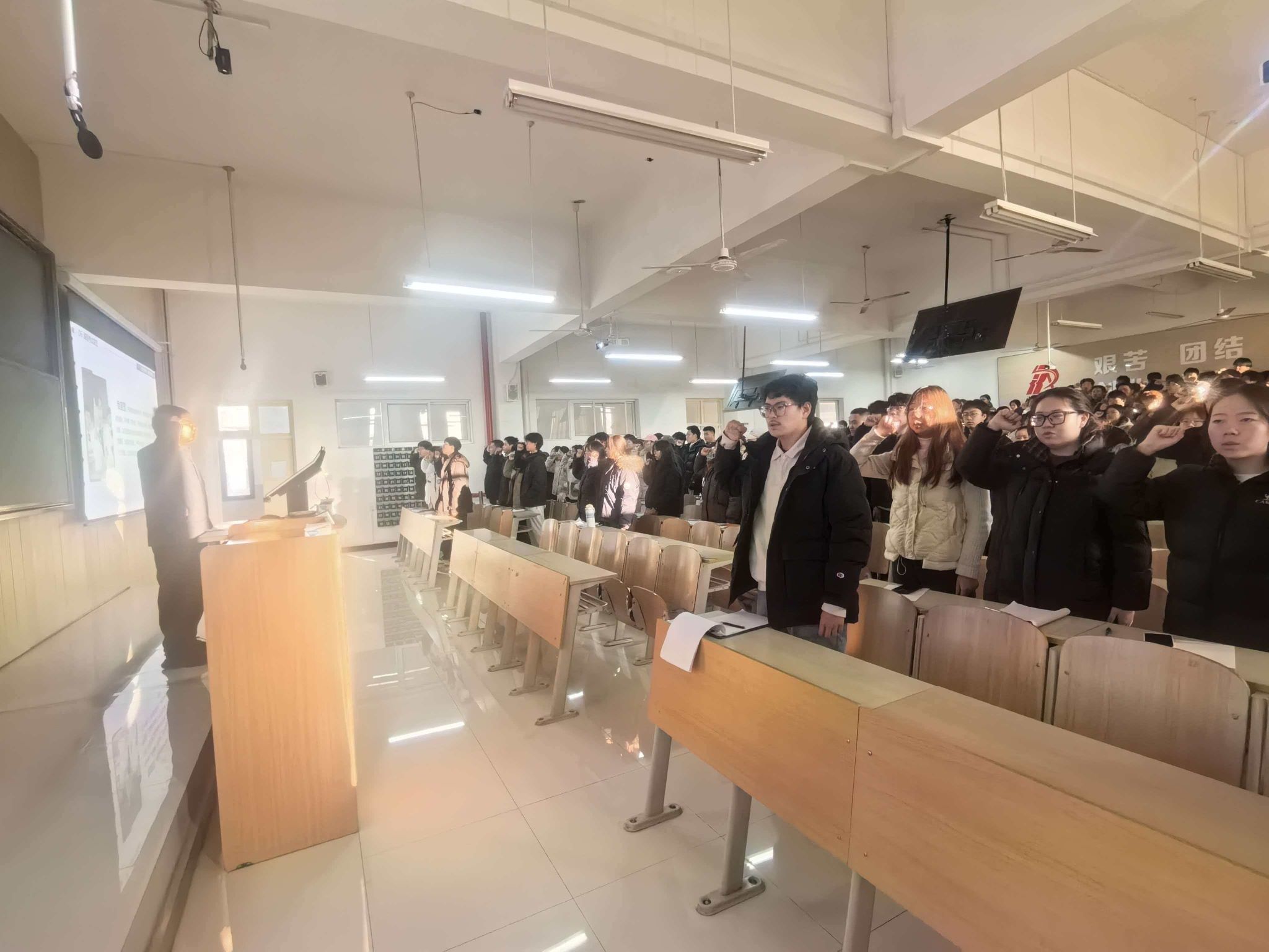 随后,大会进入集体宣誓环节。祝志一组织全体新生进行诚信考试宣誓,郑重承诺自觉遵守考场纪律、维护考试公平。铿锵有力的誓言中,展现了2025级新生恪守诚信、捍卫优良考风的坚定信念。