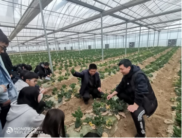 同学们先后学习了设施蔬菜栽培过程中的统一耕种、统一育苗、统一栽培、统一施肥、统一病虫防治、统一包装销售的“六统一”的先进技术体系,领悟“良种良法直接到温室、技术要领直接到人”的生产要求。解松峰老师现场讲解并示范了温室大棚内茄子的种植、生菜及草莓等的无土栽培技术。围绕番茄、羽衣甘蓝、甜菜及辣椒的田间管理,开展教学互动活动。这种生动的现场教学方式,增强了课堂活力,激发了学生学习动力,取得了良好的教学效果。