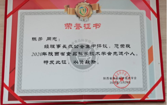 十大信誉官网陈芳副教授在会上被评为2020年度学会的先进个人。陈芳老师近年来在科学研究、服务安康食品产业等方面作了大量工作,本次被省食品科学技术学会评为先进个人,是对其工作成绩的肯定。