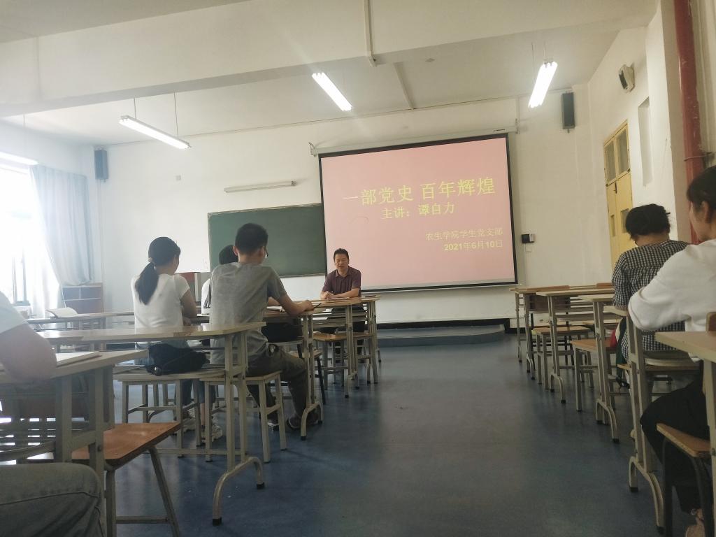 为进一步推动党史学习教育走深走实,增强大学生党员爱党爱国情怀,做到常怀忧党之心、为党之责、强党之志,不断增强守初心、担使命的思想自觉和行动自觉。6月10日,学生党支部书记谭自力以“百年峥嵘岁月·百年铸就辉煌”为题,为全体学生党员上了一堂生动的党史学习教育课。