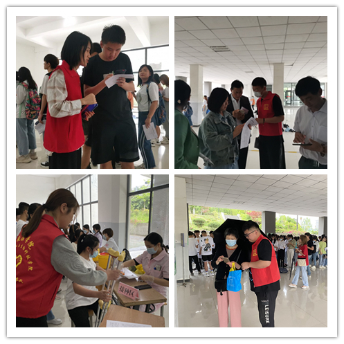 服务当日,前来参加疫苗接种的师生较多。志愿者们身穿红色马甲,开展秩序引导、测量体温、信息录入、辅导接种者填写知情同意书、服务留观人员等工作。大家分头在入场区、登记区、签字区、接种区、留观区坚守本职岗位,引导接种人员、维护现场秩序、逐一发放材料并指导正确填写登记信息,为接种点的医护人员分担了不少工作量,不仅提高了疫苗接种效率,也为接种人员普及了健康防疫知识和接种后注意事项。在志愿者和医护人员的共同努力下,江北校区疫苗接种点始终秩序良好、井然有序。