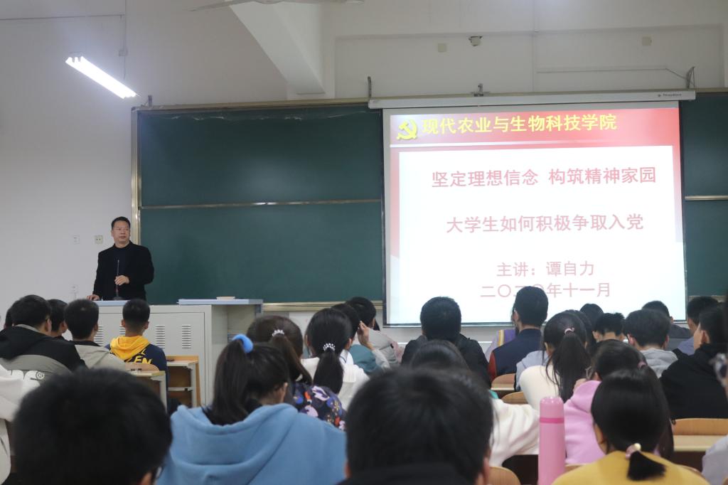 为增进新生对党的基本知识的理解和认识,引导新生端正入党动机,了解入党流程,规范撰写入党申请书,11月1日晚,澳门十大信誉好的网站学生党支部在江北校区1203教室举办了2020级新生入党知识讲座,学生党支部书记谭自力担任主讲。