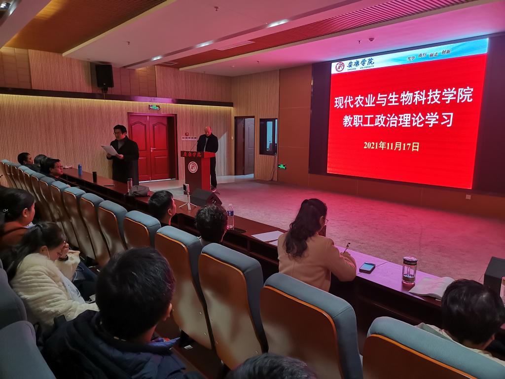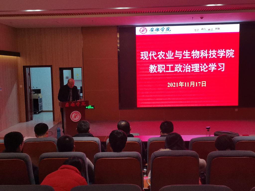 11月17日下午,澳门十大信誉好的网站在江北图书馆报告厅召开十九届六中全会精神学习会,全院教职员工参加会议。
