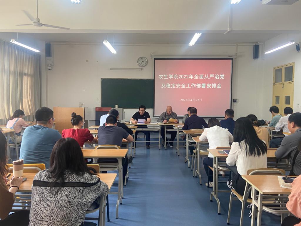4月27日下午,十大信誉官网在1221教室召开2022年全面从严治党及稳定安全工作会议,贯彻落实学校有关工作精神和会议要求。
