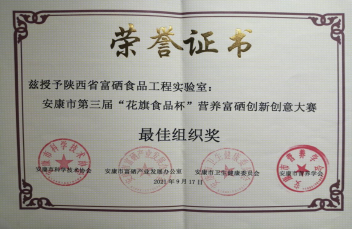 十大信誉官网省级平台陕西省富硒食品工程实验室作为协办单位,全程积极组织发动号召相关企业参赛并推荐食品专业学生加入其团队,提高了整个作品的创新性及艺术效果,并获得了1项银奖,2项铜奖的好成绩。