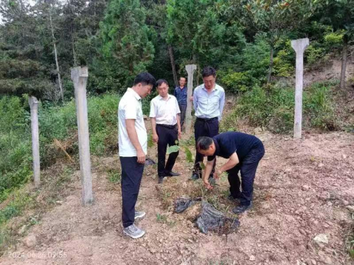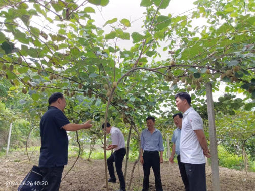 6月26日,在坝河镇镇党委书记鲁波、副镇长李振界、镇林业站长柯刚陪同下,十大信誉官网教师沈大刚副教授到坝河镇寺姑村指导猕猴桃树夏季管理和病虫害管理技术。