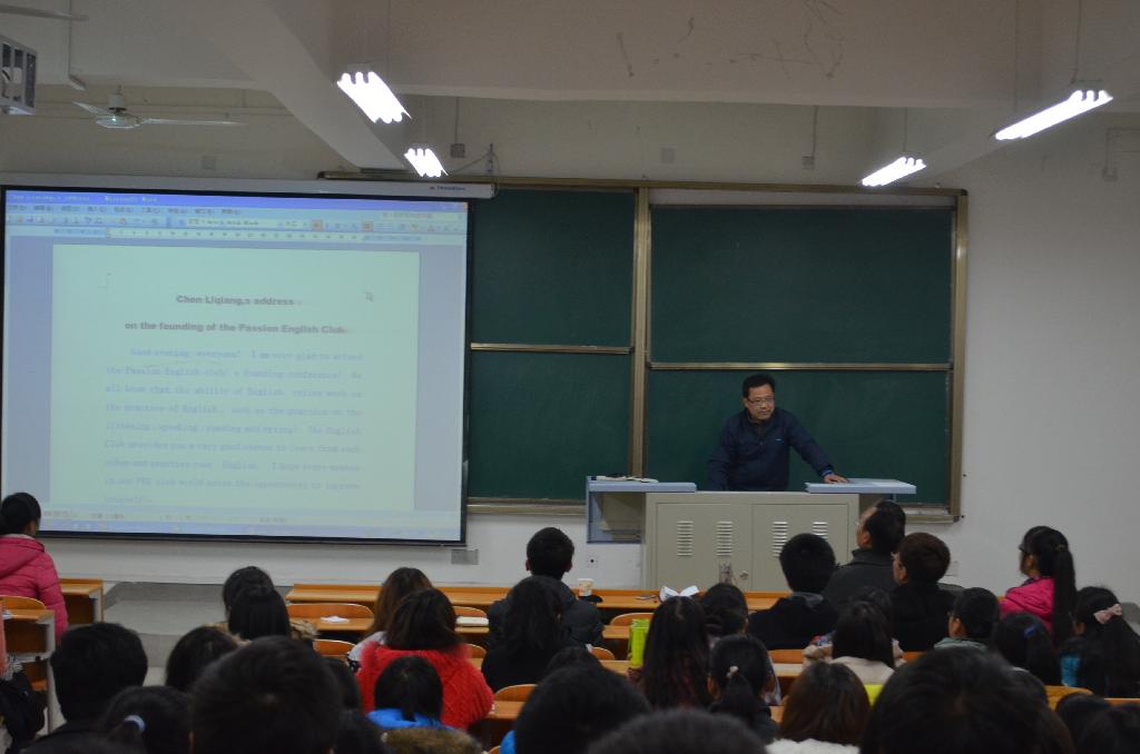 会上,俱乐部特聘副院长陈立强为指导老师,他用流利的英语为大家做了激情精彩的演讲,在学生中留下了深刻的印象,赢得了热烈掌声。总支书记屈国胜对俱乐部成立前期付出辛勤工作的同学表示感谢。激情是强烈的情感表现形式,是人们对学习、工作和生活的一种积极向上的态度,是人生正能量体现的的一种形式,人在激情的支配下,能调动身心的巨大潜力,成为解决学习、工作和生活中各种困难时的积极状态,是人们在学习、工作、生活中体现出充实感和幸福感的源泉,饱含激情的人才会在生活的道路上保持乐观、一往无前。他期望同学们在激情英语俱乐部中,进一步学习英语方文化的精华,创造自己的精彩人生,期望“激情英语俱乐部”定会成为展现十大信誉官网大学生风采的窗口。