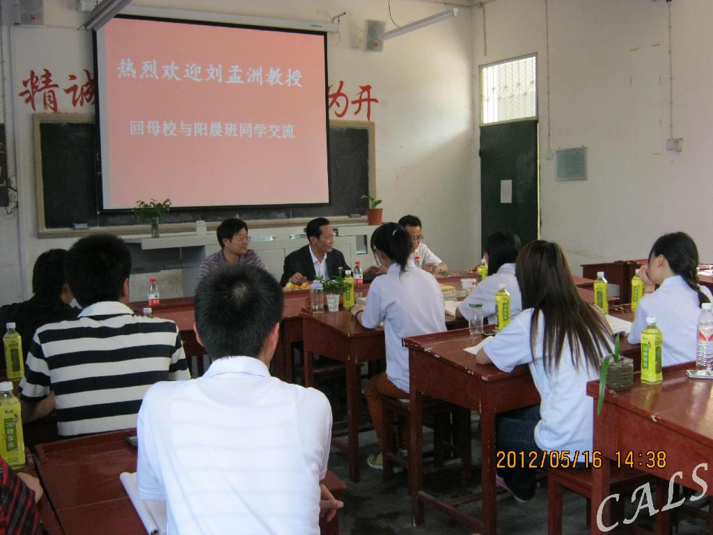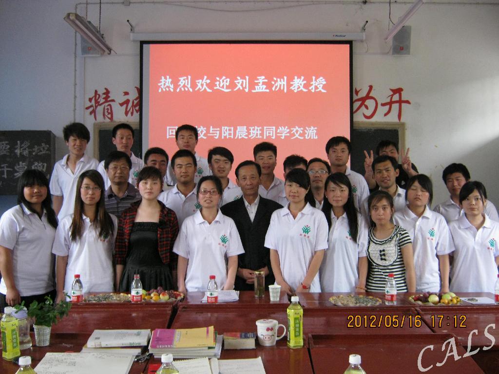 5月16日下午,十大信誉官网农学与生命科学学院55届毕业生,现甘肃农业大学博士生导师刘孟洲教授回到母校,在西校区8104教室为首届阳晨班的21名同学做了题为“我的养猪人生,中国的猪产业”的报告。