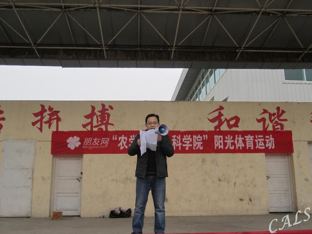 早上8.30分,活动正式开幕,副院长陈立强激励同学们要坚持参加体育锻炼,养成锻炼习惯,培养个人兴趣爱好,迅速掀起校园健身活动的热潮,形成生动活泼、朝气蓬勃、生龙活虎的校园体育文化氛围,为培养德、智、体、美全面发展的合格人才作出积极的贡献。