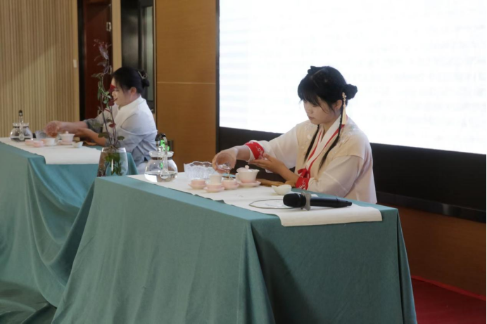 经过前期报名和预赛选拔,8支队伍进入决赛。比赛过程中,巧妙穿插茶文化知识问答环节,吸引众多观众踊跃参与,不仅活跃了会场气氛,更点燃了大家对茶文化的探索热情。赛场上,选手们身着典雅茶艺服饰,举止从容。各位选手以茶为媒,通过行云流水般的冲泡技艺、匠心独运的茶席设计、富有内涵的茶艺解说,展现茶的色、香、味、形之美,诠释茶文化的博大精深。